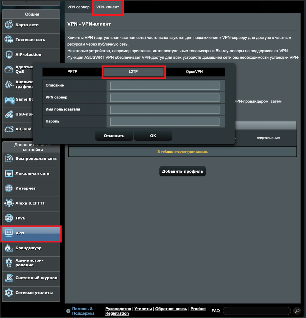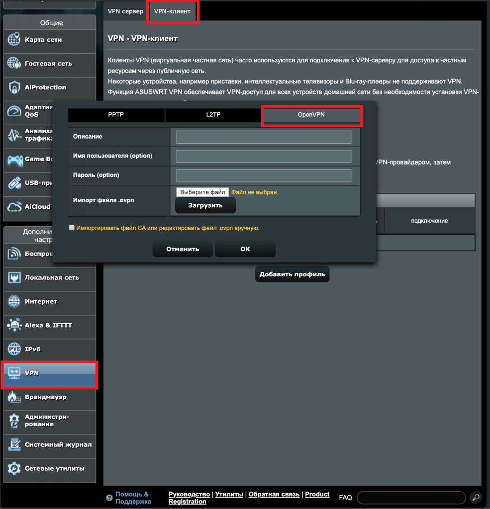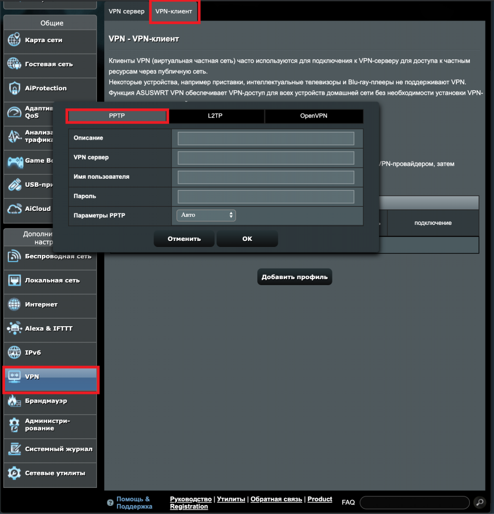 Настройка VPN на роутере ASUS